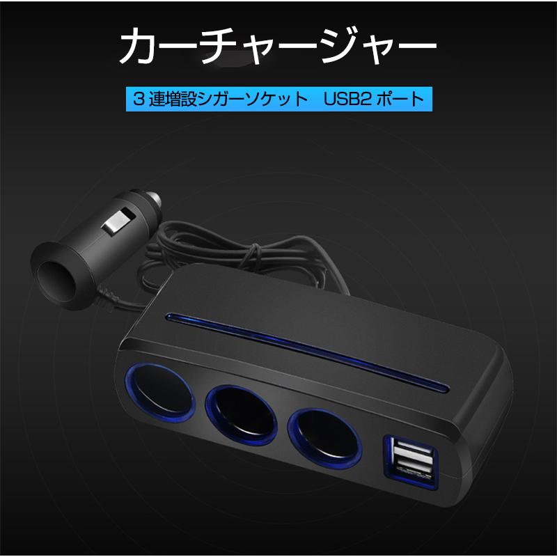 車載充電器 3連 シガーソケット カーチャージャー 1w 3a Usb2ポート スマホ充電 車載 シガー電源 12 24v車対応 カタログギフトも 車載用電源 車 急速充電 Usb充電器 電源